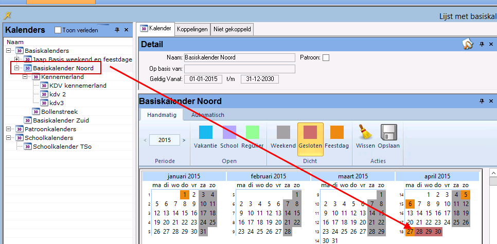 In de Basiskalender Noord worden nu de slutiingsdagen 28, 29 en 30 april ingevuld.