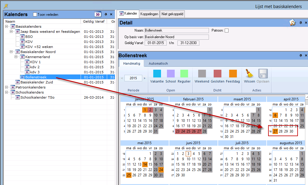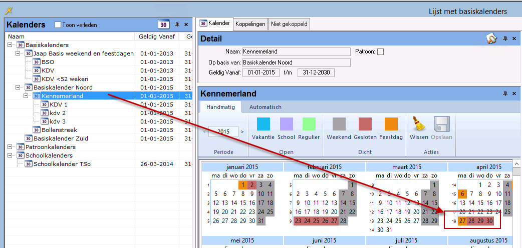 Vervolgens wordt er een wijziging in de kalender Kennemerland gemaakt De dagen 28,29 en 30 april worden aangemerkt als sluitingsdagen. De wijziging wordt opgeslagen.