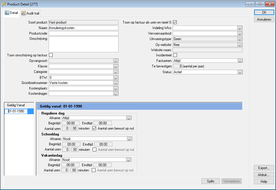 - Voor de betekenis van alle velden zie Schermbeschrijving Product Detail.