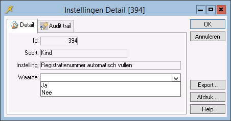 Wanneer u ervoor gekozen hebt om een Registratienummerreeks voor kinderen te gebruiken dan kunt met deze parameter bepalen dat wij de invoer van nieuwe kindgegevens er automatisch een regitstratienummer toegevoegd wordt.