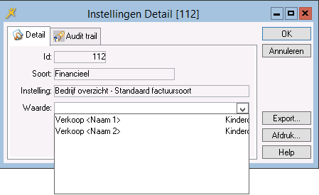 Met de instelling van deze parameter bepaalt u - indien u gebruik maakt van de functionaliteit Faciliteren - welke standaard factuursoort (in- of verkoop) u hanteert voor bedrijfsoverzichten.