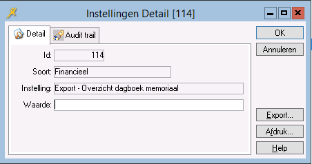 U gaat verder met het instellen van de parameter Export - Overzicht dagboek verkoop.