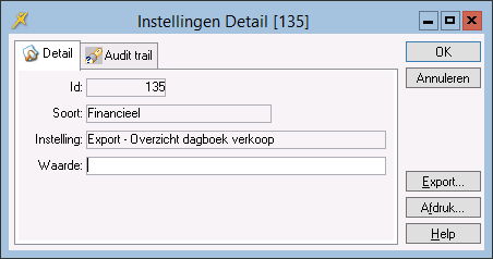 Beheer>Systeembeheers>Instellingen>(tab)Financieel