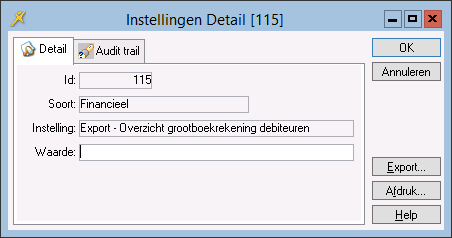 Met de instelling van deze parameter legt u - indien u gebruik maakt van de functionaliteit Faciliteren - het grootboekrekeningnummer Debiteuren vast.