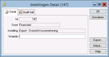 Beheer>Systeembeheers>Instellingen>(tab)Financieel