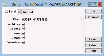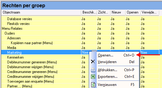 In flexkids kunt u in het deelvenster Marketing van het Ouder-Informatiescherm zien of een ouder zich voor de herinneringsfunctionaliteit heeft aan- of afgemeld. Om in het het deelvenster Marketing zichtbaar te maken dient u de rechten hiervoor aan te zetten.