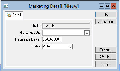 Als er bij de betreffende ouder geen Marketingactie staat kunt u deze zelf aanmaken voor de ouder.
