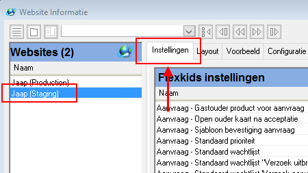 Beheer > Flexweb > Websites > Lijstvenster