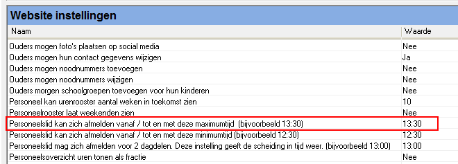 U gaat verder bij de instelling Personeelslid kan zich afmelden vanaf / tot en met deze minimumtijd.