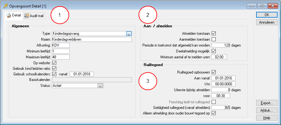 Maximum leeftijd: Verplicht veld. In dit veld vult u de eindleeftijd in hele maanden op waarop u een kind toelaat tot uw locatie. Mocht het kind langer blijven dan kunt u dit aanpassen bij de plaatsing van het kind.