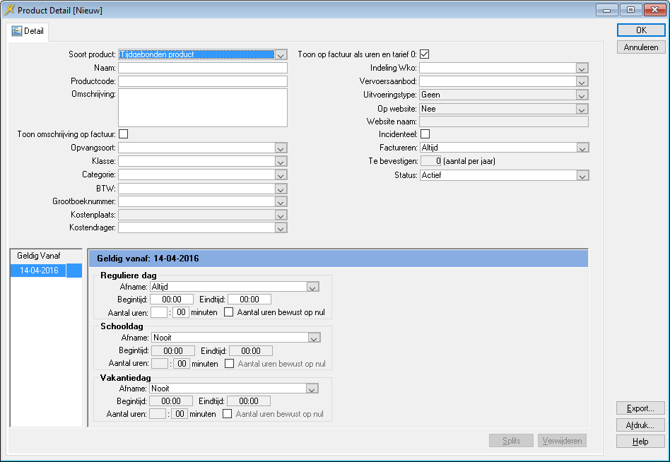 - U kent het dagtype van het product wat u gaat aanmaken.