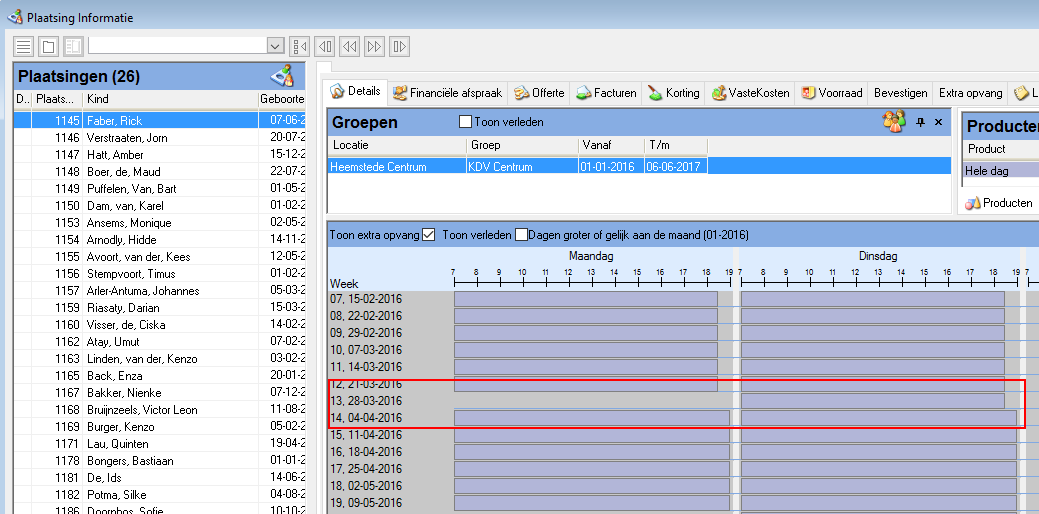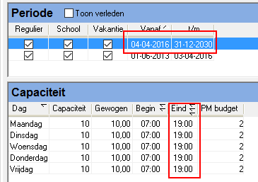 In onderstaande procedure wordt beschreven hoe u te werk gaat bij het splitsen van de geldigheidsperiode. De productwijziging bestaat in dit geval uit het verlengen van de opvangtijd (van 18:30 naar 19:00).