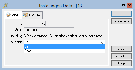 Opvangaanvragen worden in flexkids afgehandeld in het scherm Website mutaties Informatie (Informatie>Website mutaties) met behulp van een zogenoemde wizard. In een van de laatste pagina's van die wizard kan met behulp van een selectievakje worden aangegeven of er na de afhandeling van het mutatieverzoek een bericht naar de ouder moet worden gestuurd. U kunt ervoor zorgen dat dit selectievakje standaard ingeschakeld is.