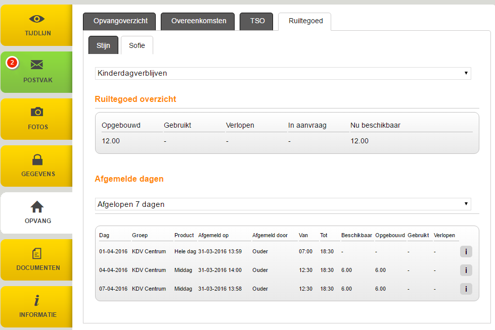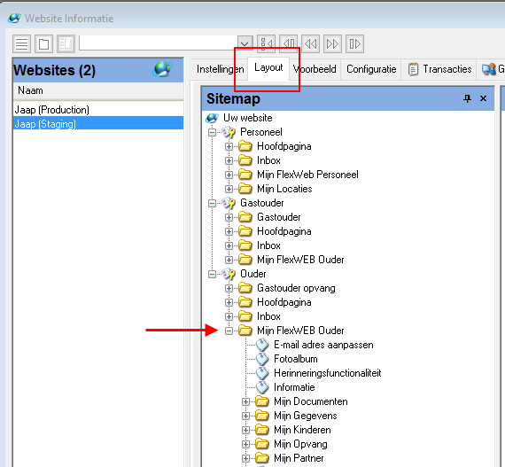 Uw organisatie maakt gebruik van de functionaliteit Ruilen met tegoed. Als u de ouders via het Klantportaal inzicht wilt geven in het opgebouwde ruiltegoed van hun kind moet u dat specifiek aangeven in flexkids. In het tabblad Layout van het scherm Website Informatie stelt u de optie Zichtbaar van het onderdeel Ruiltegoed in op Ja.