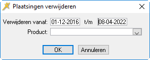 Selecteer de plaatsingen waaruit u het vakantieproduct wil verwijderen, open met de RM-knop het contextmenu en kies Verwijderen... U ziet het popup-venster Plaatsingen verwijderen: