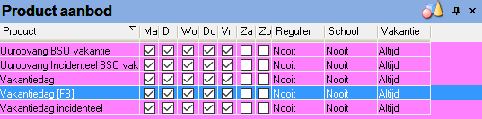 We gaan nu het aangepaste schoolproduct toevoegen aan het productaanbod dat is gekoppeld aan de toegevoegde vakantieregel