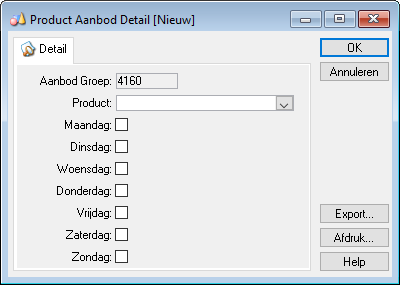 Selecteer het combinatieproduct in keuzelijstveld Product, selecteer de dagen dat het product wordt aangeboden en kies OK.