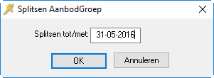 Splits de periode door de einddatum in te vullen van de 1e periode. Dit is de dag voorafgaande aan de dag dat u het combinatieproduct in gebruik neemt. Als u het combinatieproduct gaat gebruiken per 01-06-2016 vult u dus in 31-05-2016: