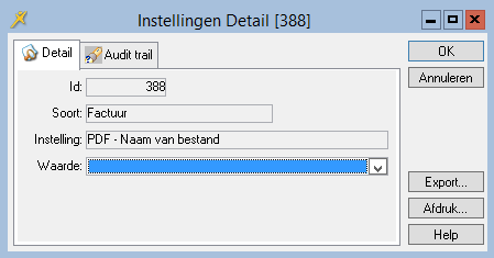 Het is mogelijk om bevestigde facturen op te slaan in een map buiten de flexkids omgeving. Met de instelling van de parameter PDF - Naam van bestand legt u de naam het bestand (de factuur) vast zoals deze ge-exporteerd wordt naar de map de u aangegeven heeft bij de parameter PDF-Map voor opslag.