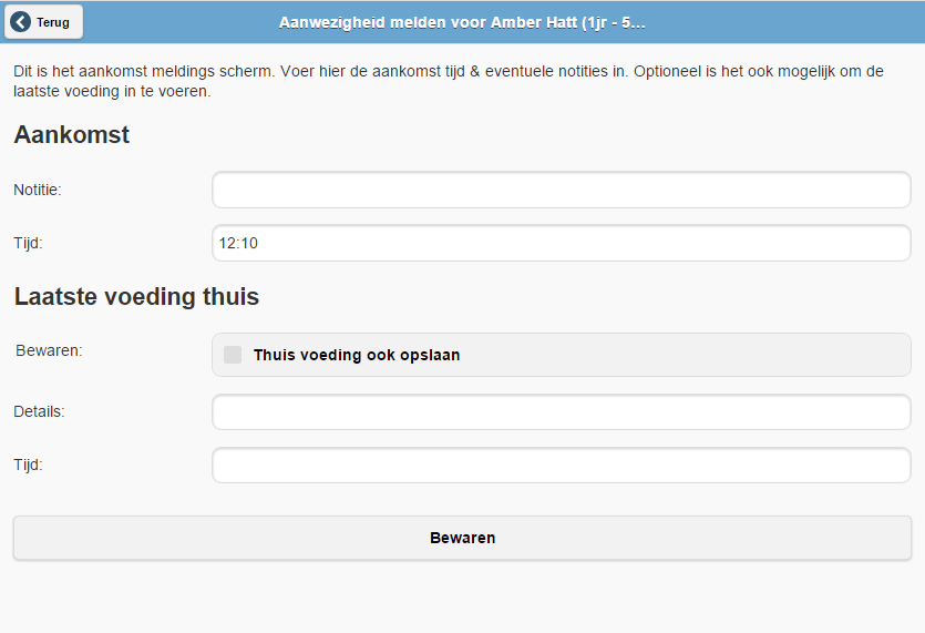 Aan het begin van de dag registreert u welke kinderen wel/niet aanwezig zijn. Het is voor uw onderneming mogelijk om te kiezen voor een snelle of een uitgebreide registratie. U geeft dit in het configuratiescherm aan met de optie Snel aanwezigheid invoeren.