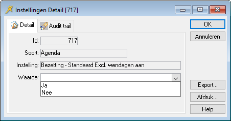 Beheer > Systeembeheer > Instellingen > (tab)Agenda