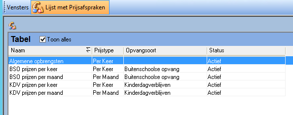 Wanneer u flexkids in gebruik neemt zijn er in de flexkids-database een aantal prijstabellen aanwezig. U controleert of u deze prijstabellen kunt gebruiken.