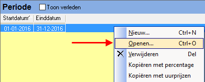 Klik met de RM-knop op de periode die u wilt aanpassen en kies voor Openen...