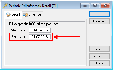 Vul in het datumveld Eind datum de eind datum van de periode in.