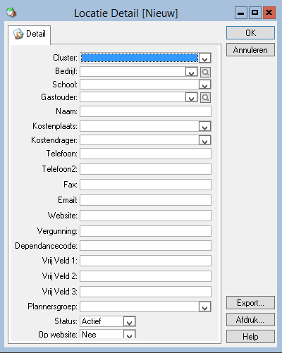 Kies in het keuzeveld Cluster het cluster waar deze locatie toe behoort.