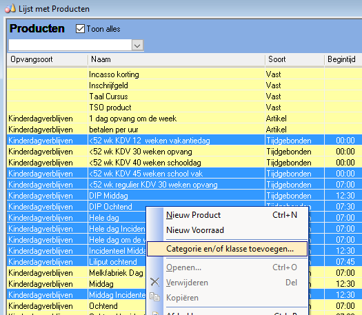Klik met de RM-knop in deze selectie en kies Categorie en/of klasse toevoegen: