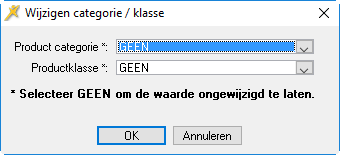 Selecteer de desbetreffende categorie in het keuzelijstveld Product categorie en klik op OK.