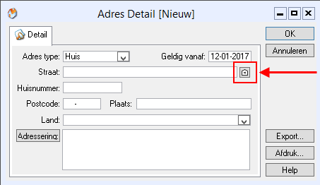 NB: Het invoeren van buitenlandse adressen is niet mogelijk als de systeemparameter Autonoom werken van de functionaliteit de waarde Ja heeft. De functionaliteit adres opzoeken is alleen van toepassing op adressen in Nederland.