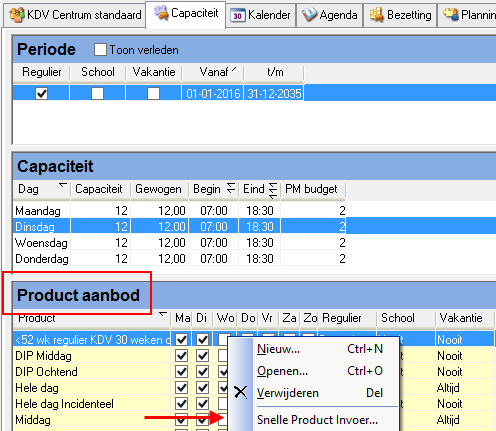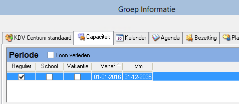 Selecteer op het tabblad Capaciteit, in het deelvenster Periode, de juiste periode. (Regulier, School of Vakantie)