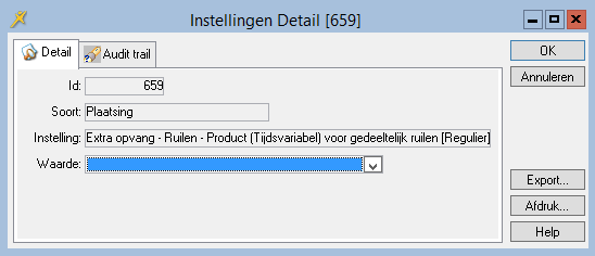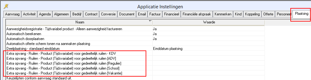 NB: De parameter Extra opvang - Ruilen - Product [Tijdvariabel] voor gedeeltelijk ruilen [ADV] is als applicatie instelling zichtbaar maar kan niet gebruikt worden.