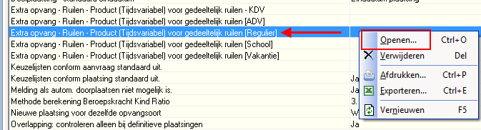 Klik met de RM-knop op de betreffende regel en kies Openen...