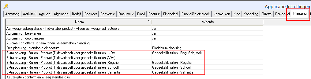 Maakt u voor uw KDV groepen uitsluitend gebruik van een basiskalender met reguliere dagen dan maakt u gebruik van de systeemparameter Extra opvang - Ruilen - Product [Tijdsvariabel] voor gedeeltelijk ruilen [Regulier].