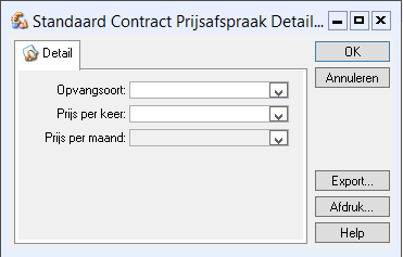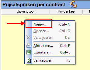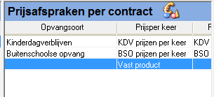 Nadat u het standaard contract en de prijstabellen hebt gemaakt kunt u prijsafspraken toevoegen aan het standaard contract. In een prijsafspraak legt u vast welke prijstabellen moeten worden gebruikt voor de berekening van de kosten van de afgenomen soort opvang (opvangsoortgerelateerde prijstabellen). U kunt ook prijsafspraken vastleggen voor niet-opvangsoortgerelateerde kosten, bijvoorbeeld vaste kosten.