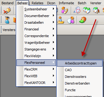 Wanneer er gebruik gemaakt wordt van de koppeling tussen flexkids en Afas Profit/HRM zullen de arbeidscontracttypen mee gesynchroniseerd worden naar flexkids.
