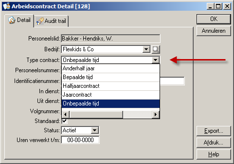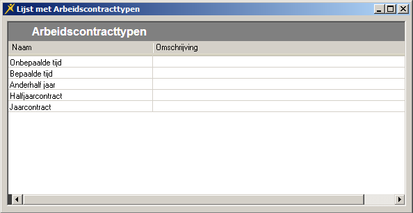 Bij de import worden de contracttypes als stamgegeven opgeslagen. U kunt dat controleren door de lijst met arbeidscontracttypen na het importeren te openen: