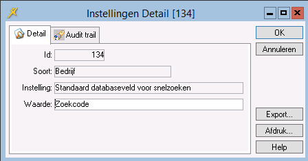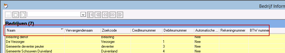 Flexkids kent de functie snelzoeken in het lijstvenster van de Bedrijf Informatie. De functie snelzoeken zoekt standaard in de kolom Naam. U kunt bepalen in welke kolom (database veld) de snelzoekfunctie actief moet zijn, bijvoorbeeld de kolom Zoekcode. Het gebruik van deze parameter is alleen zinvol als het betreffende database veld voor alle bedrijven in Bedrijfs Informatie is ingevuld. Indien u geen waarde invult wordt gezocht in de kolom Naam.