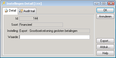 Met de instelling van deze parameter legt u het nummer van de grootboekrekening vast waarop een betaling wordt geboekt indien deze betaling de status Gesloten heeft.