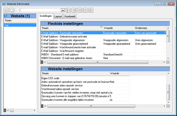 Zodra een gastouder zijn uren heeft geregistreerd wordt automatisch een e-mailbericht naar de vraagouder gestuurd met het verzoek de uren te accorderen. De vraagouder op zijn beurt geeft via flexweb aan of hij al dan niet akkoord gaat. Naar aanleiding hiervan wordt automatisch een e-mailbericht verstuurd aan de gastouder om deze op de hoogte te stellen van de beslissing van de vraagouder. Voor de e-mailberichten kan gebruik worden gemaakt van standaard sjablonen die u kunt opgeven via het tabblad Instellingen van het scherm Website Informatie: