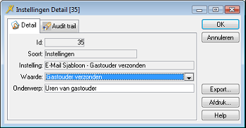 In het veld Waarde selecteert u in principe het e-mailsjabloon dat u hebt aangemaakt voor dit doel. U kunt alleen kiezen uit documentsjablonen gebaseerd op het schema WebsiteGastouder.